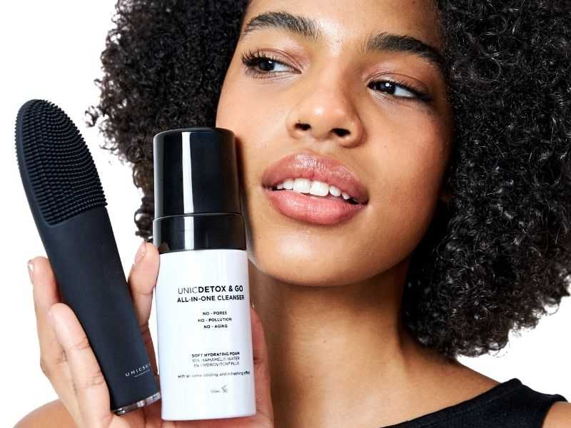 Aplica la espuma limpiadora UNICDETOX & GO sobre la parte frontal del dispositivo y pulsa una vez para activar la tecnología térmica y sónica. Masajea el rostro con movimientos circulares durante 30 segundos. Aclara con agua.