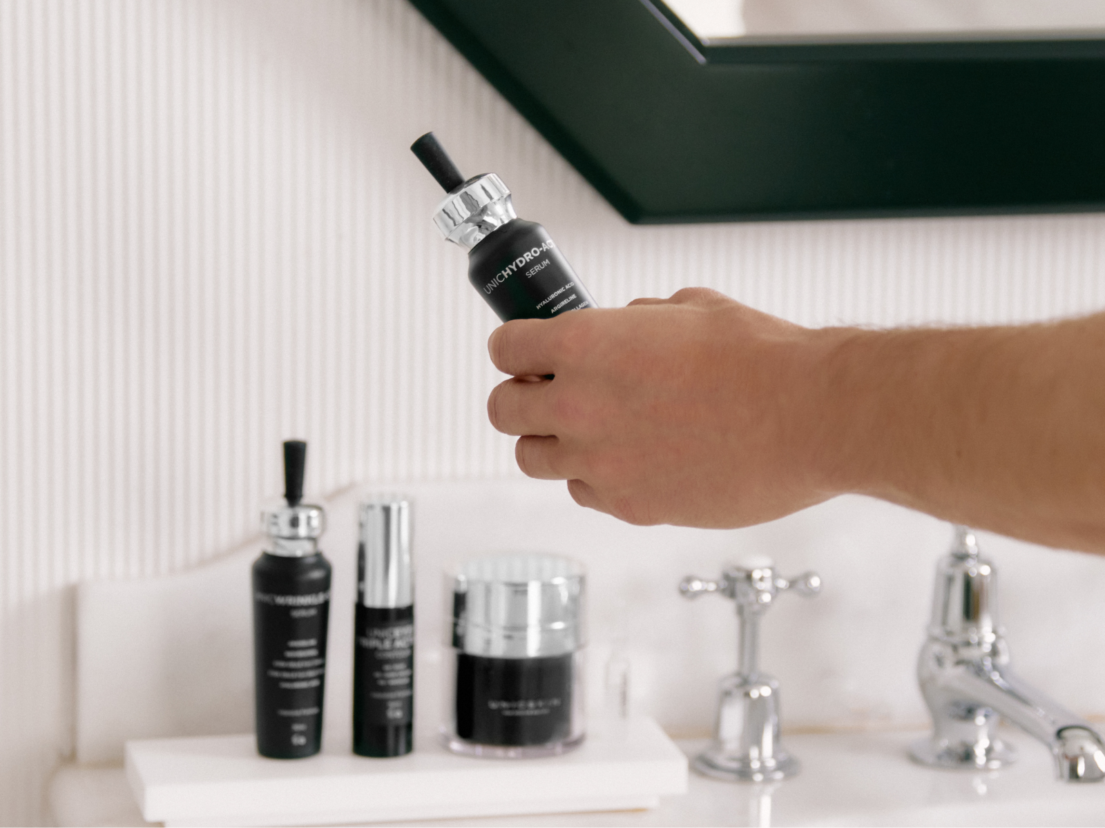 - Paso 2: Deposita la cantidad necesaria de crema en la palma de la mano.