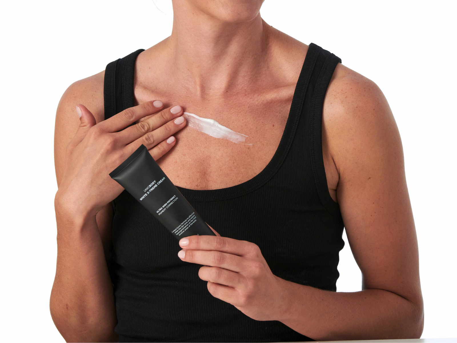 En cuello, escote y manos, se recomienda el uso de UNICSUN+ DARK SPOT CONTROL como aliado perfecto para completar la rutina despigmentante.
