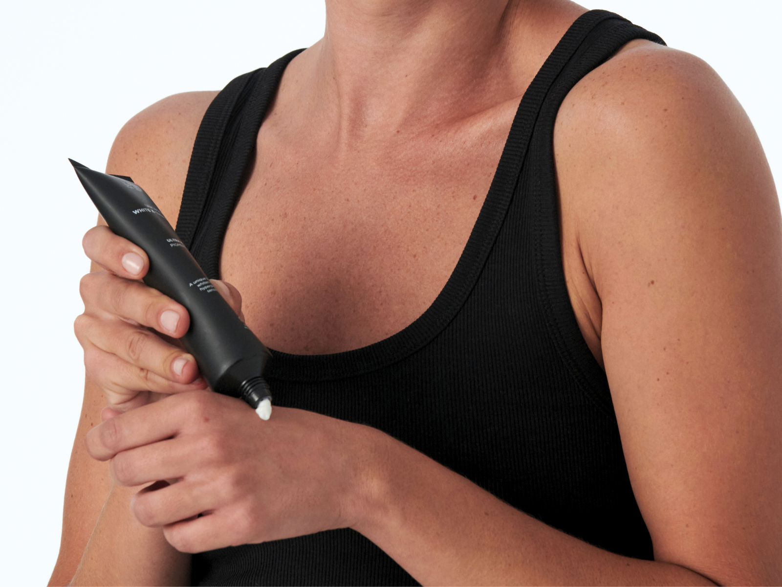 Aplicar mañana y noche sobre la piel limpia y seca, masajeando suavemente en las zonas a tratar —manos, escote, rodillas, codos y zonas íntimas— hasta su completa absorción.