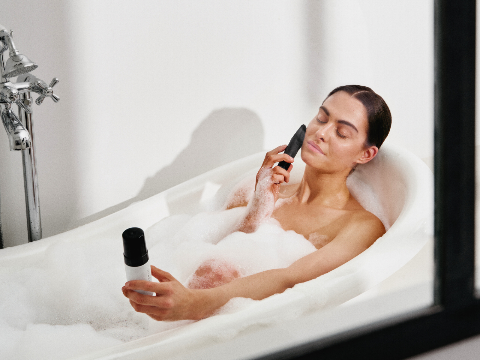 Aplica la espuma limpiadora UNICDETOX & GO sobre la parte frontal del dispositivo y pulsa una vez para activar la tecnología térmica y sónica. Masajea el rostro con movimientos circulares durante 30 segundos. Aclara con agua.